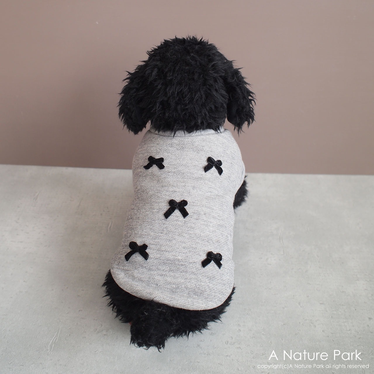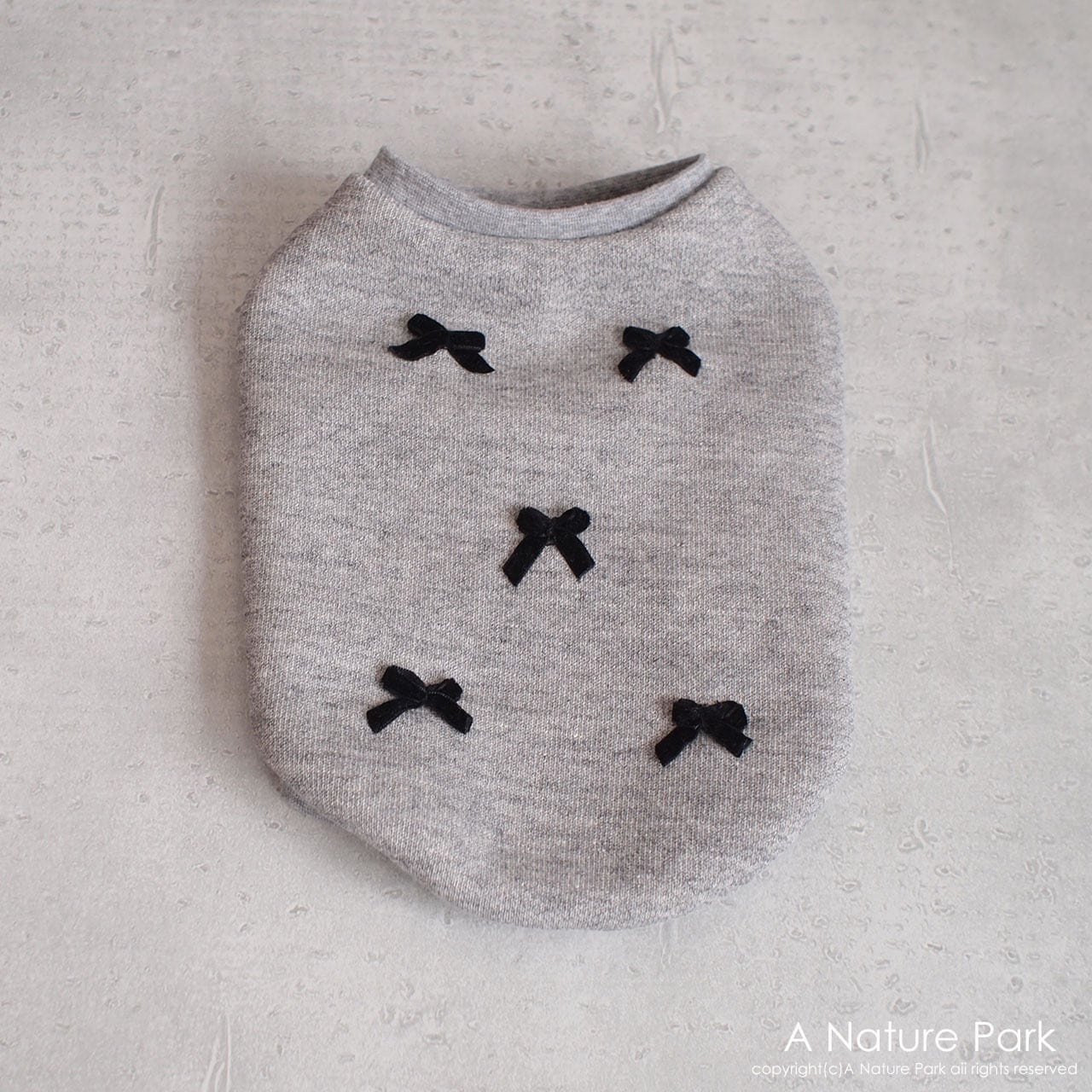 霜降りグレーのトレーナー生地にポンポンとリボンで仕上げております。